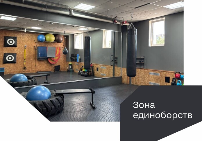Тренажерный зал с новым оборудованием, большой групповой зал и зал бокса в свободное от уроков время, использование комфортных раздевалок, душевых и остальных удобств клуба.